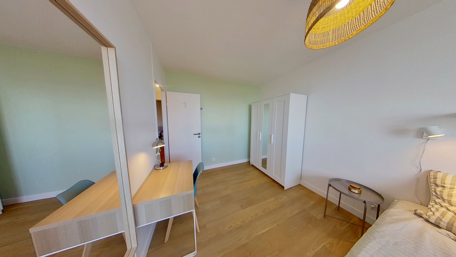 La chambre proposée est entièrement meublée (lit avec oreillers et couette, bureau, rangements). Le matériel de ménage est fourni et la colocation dispose de la fibre très haut débit.