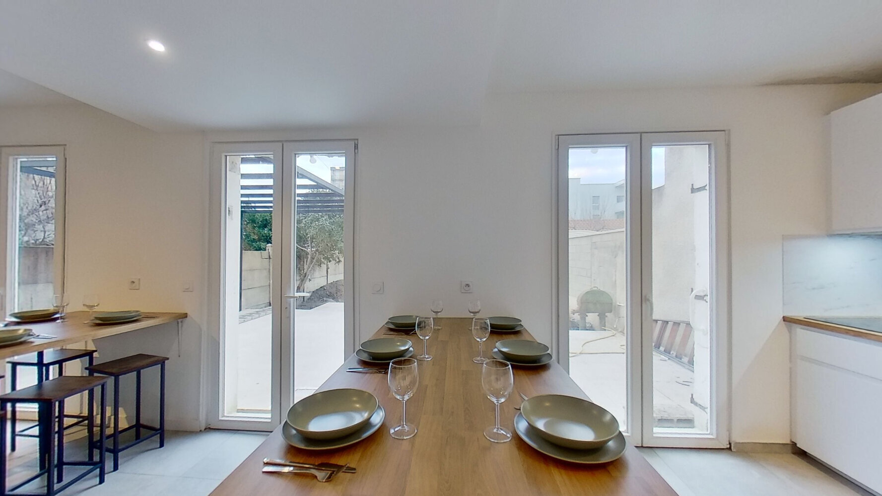 Cette maison T13 à quelques pas du 8ème arrondissement vous propose : une belle cuisine toute équipée (four, micro-ondes, lave-vaisselle, grand réfrigérateur, ustensils de cuisine), un lumineux séjour avec écran plat, 5 salles de bain avec douche, 2 lave-linge, 2 sèche-linge et 3 WC indépendant. La maison possède un superbe jardin arboré avec piscine pour prendre des apéros entre amis et profiter du soleil en été.