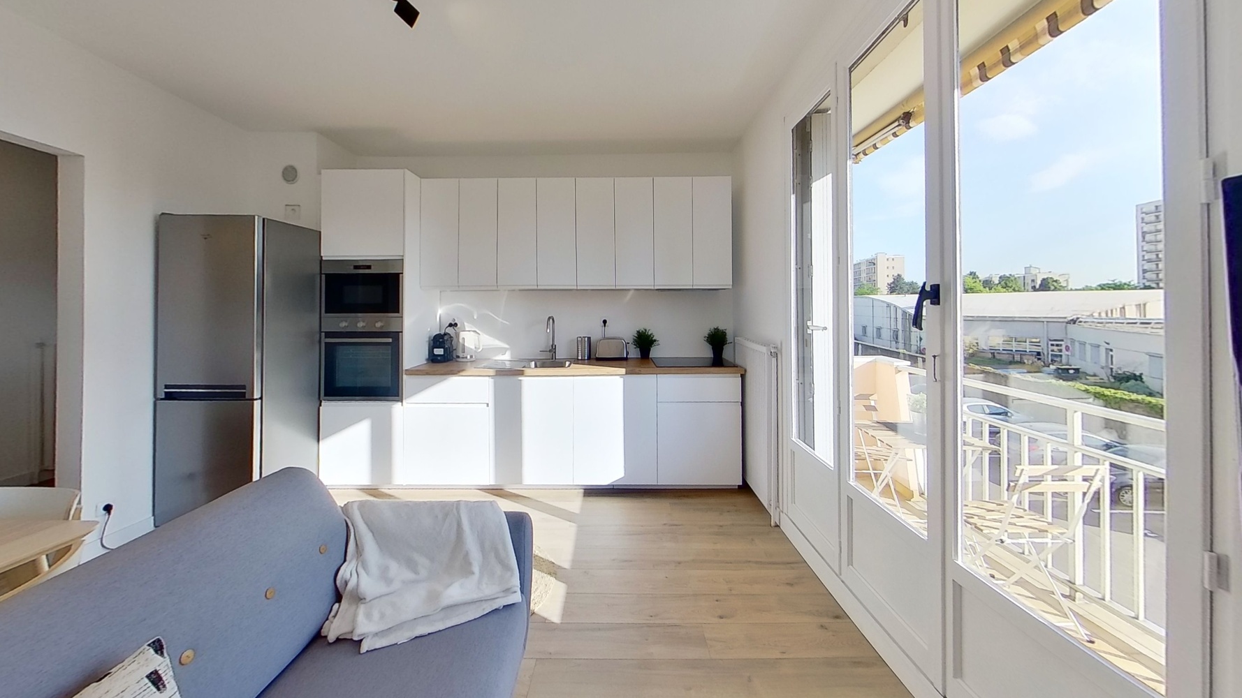 Lâappartement ouvre sur un agrĂ©able balcon afin de profiter du climat lyonnais.
